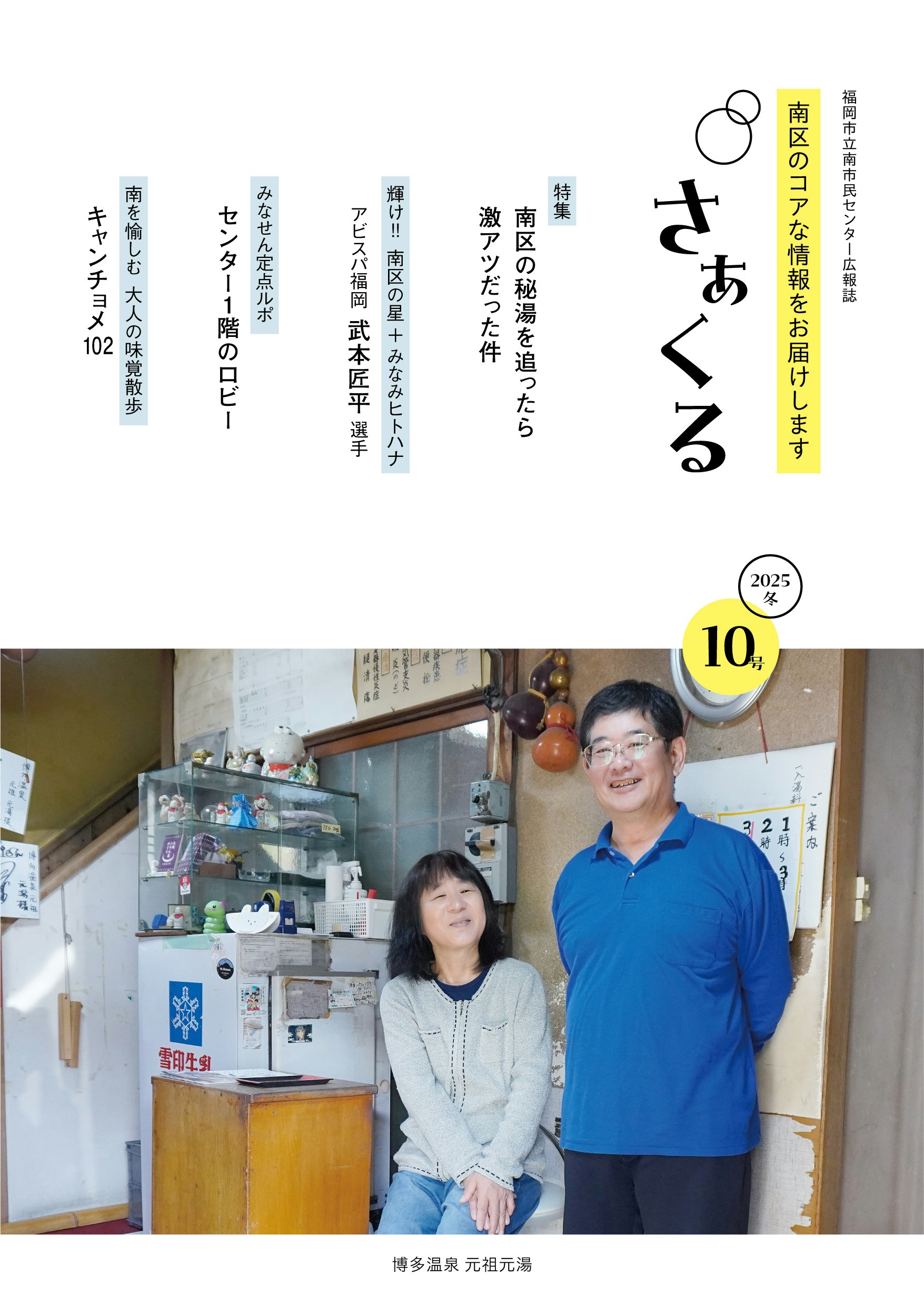 南市民センター広報誌さぁくるは南市民センター、南図書館、子どもプラザ、南体育館、南区役所、アミカス、塩原公民館、玉川公民館など南区の公共施設の他、福岡市役所1F情報プラザ、あすみんなどで配布しています。配布先は今後、広げていく予定です。